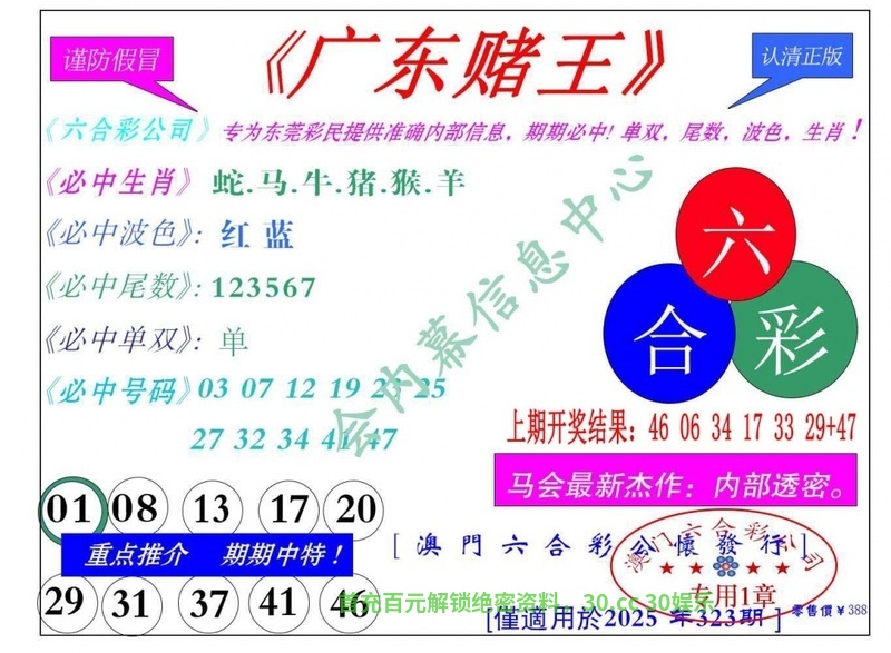 327期:六合三怪/内部平特诀/独家六合玄机/六合对诀/波色输尽光